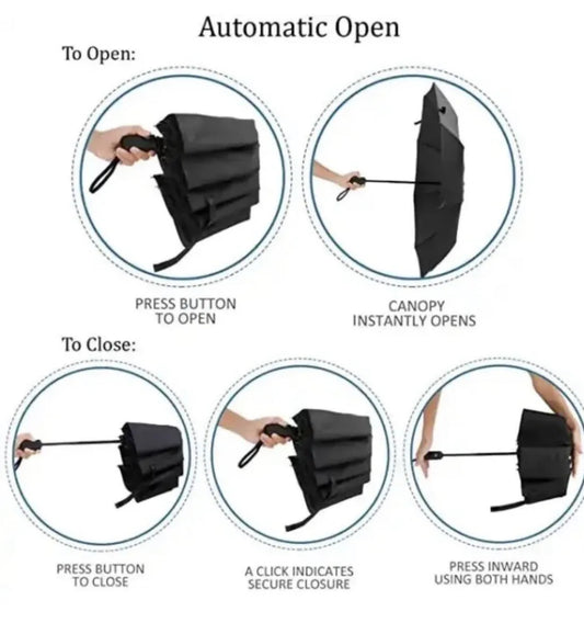 10 Rib Strong Automatic Open Umbrella Close Travel Windproof Compact Folding
